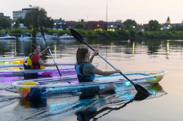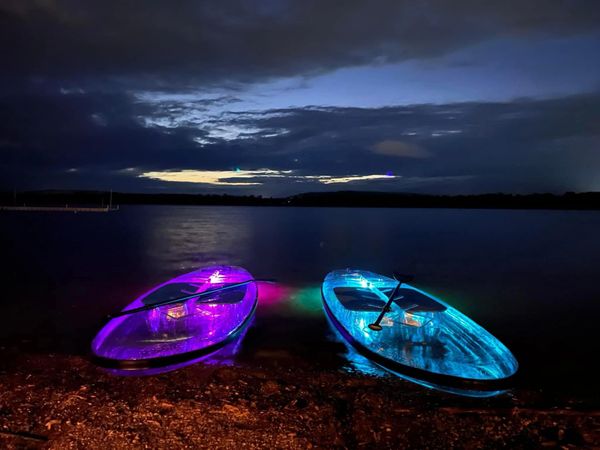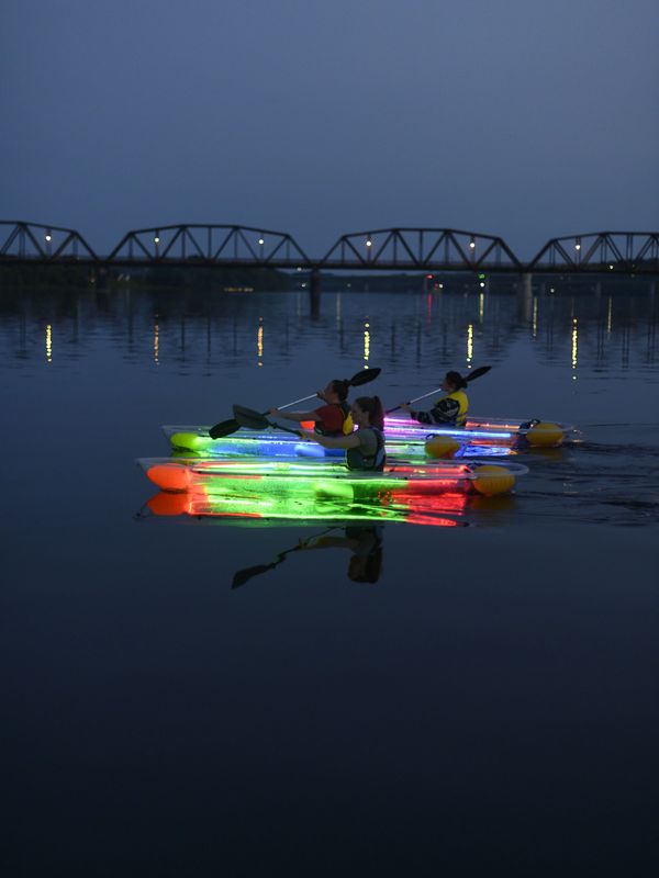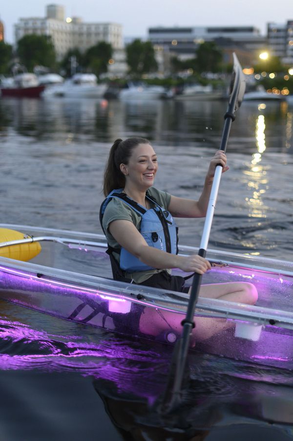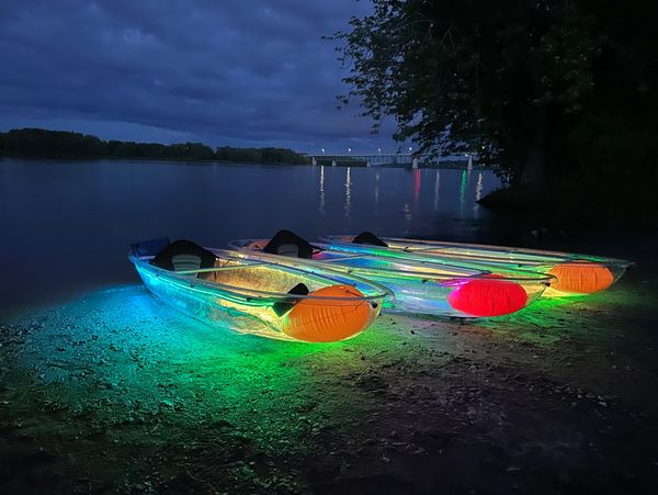 We are proud to bring you the first-ever illuminated kayaking and SUP experience in Atlantic Canada. Our transparent kayaks and SUPs are equipped with vivid color-changing LED lights and waterproof Bluetooth speakers, ensuring an abundance of enjoyment as you explore the beautiful and bountiful Wolastoq river.